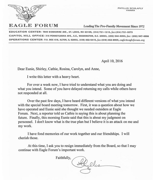 ← Eagle Forum members attempt coup to remove Phyllis Schlafly over Trump endorsement