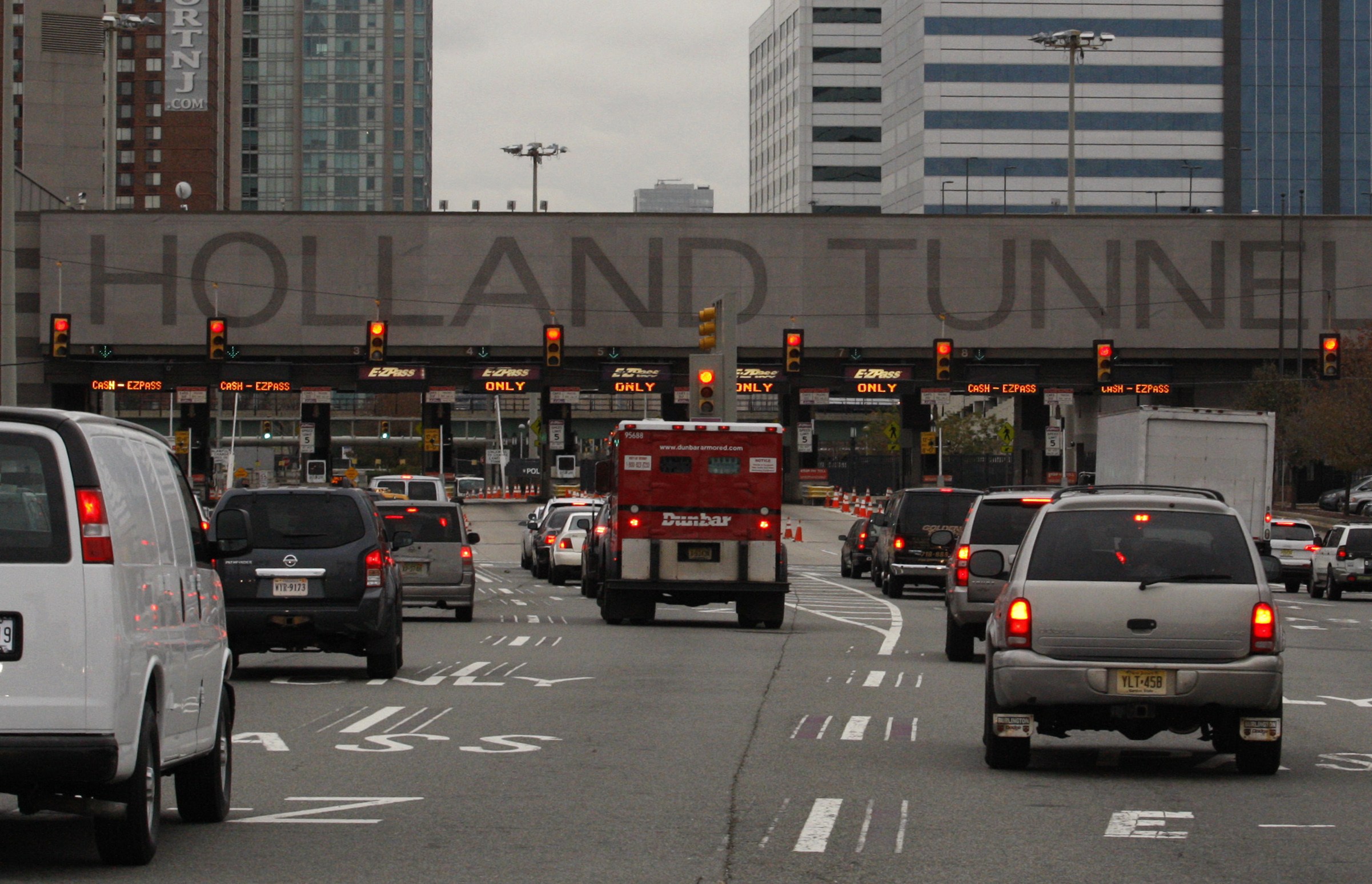 Commuters drive through Holland Tunnel to go to New York from Jersey City, New Jersey November 7, 2012, in the aftermath of Hurricane Sandy. Authorities reopened the Holland Tunnel linking Manhattan to New Jersey under the Hudson River, which helps to alleviate massive traffic jams on the roads and overwhelming crowds on public transportation systems that have yet to fully recover. REUTERS/Eduardo Munoz (UNITED STATES – Tags: ENVIRONMENT DISASTER TRANSPORT)