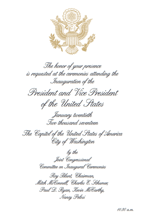 Inaugural Schedule, President Donald John Trump and Vice President Michael Richard Pence, January 20, 2017