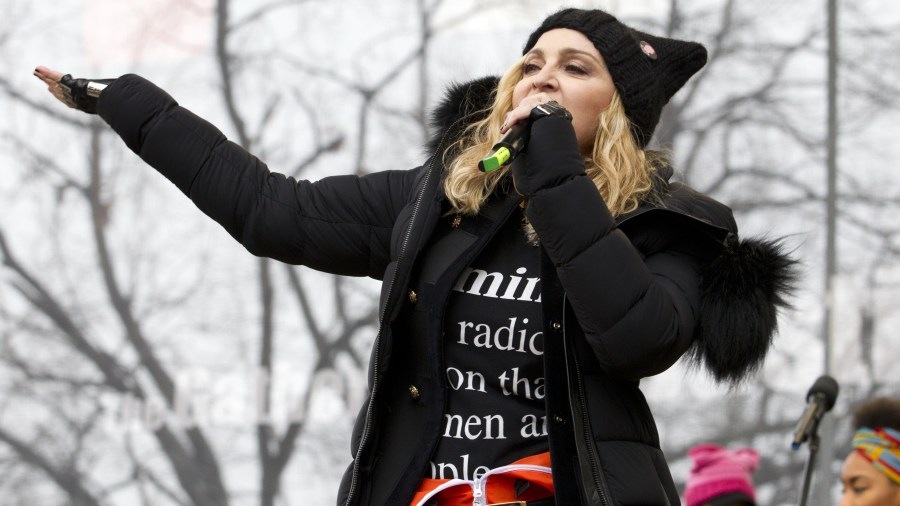 Madonna performs on stage during the Women’s March rally, Saturday, Jan. 21, 2017, in Washington. Madonna, Julia Roberts, Scarlett Johansson, Cher, Alicia Keys, Katy Perry, Emma Watson, Amy Schumer, Jake Gyllenhaal and feminist leader Gloria Steinem were some of the Hollywood A-list celebrities in attendance at the march in Washington. (AP Photo/Jose Luis Magana)