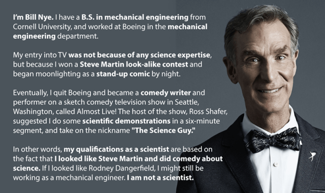 You know, if he had stuck to just explaining basic science principles to kids, I think I could still stand Nye. But he’s gone off the rails.