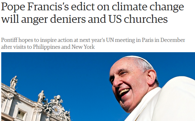 2015 Pope Francis blames human selfishness for global warming in his encyclical, named “Laudato Si (Be Praised), On the Care of Our Common Home”