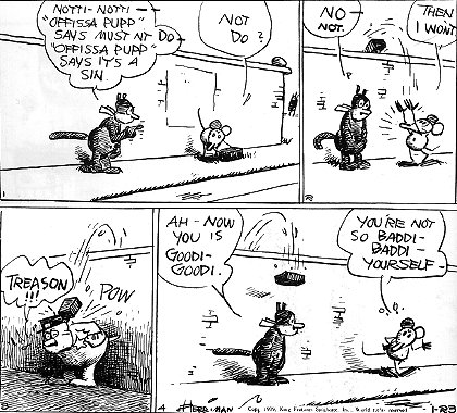 1910 “Krazy Kat” comic strip by George Herriman debuts in NY Journal. See the comic strips at the comicstriplibrary.org: http://tinyurl.com/7jm8dwr