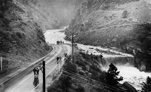 This is U.S. 34 after the 1976 Big Thompson Flood. Both the road and siphon were swept away. (Kenneth Jessen collection)