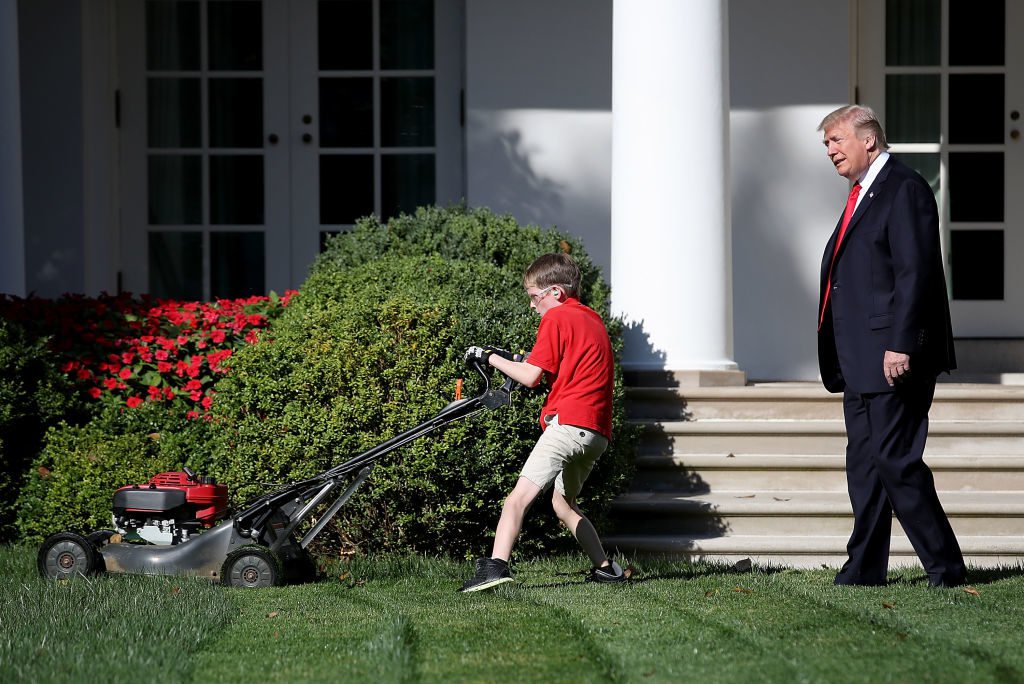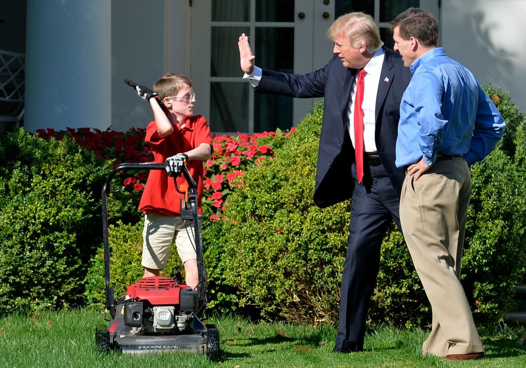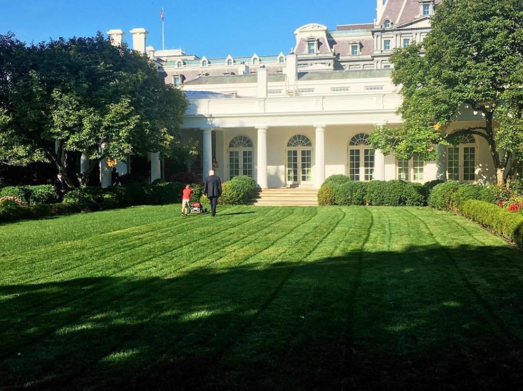 Earlier this week, Sarah Sanders said that Frank would be coming to the White House, and this morning, Frank cut the grass in the Rose Garden: