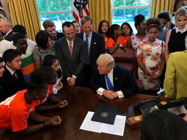 To start, Trump signed a presidential memorandum at the White House — a policy, first reported by Recode, that tasks the Department of Education to devote at least $200 million of its grant funds each year to so-called STEM fields.