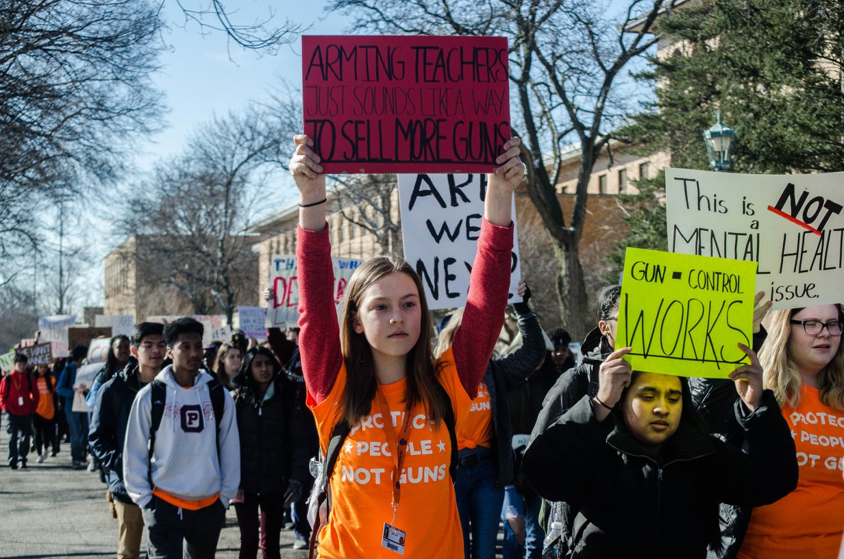 It is apparent to me that these walkouts were politically motivated, and an opportunity to use children to influence public opinion about gun control. I say “apparent” because of the obvious organization. Note the t-shirts in the picture above. A child at a middle school in the comment section of a local Chicago-area newspaper mentioned that they were “helped” by people from the Women’s March organization to prepare for their walkout. Another middle school student said he was one of the organizers and thought it was inappropriate to voice pro second amendment beliefs at a “gun control protest”.