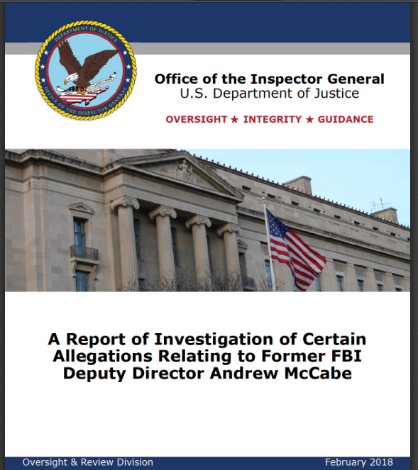 The report says that McCabe authorized the leak and then misled investigators about it, leaking in a way that did not fall under a “public interest” exception.
