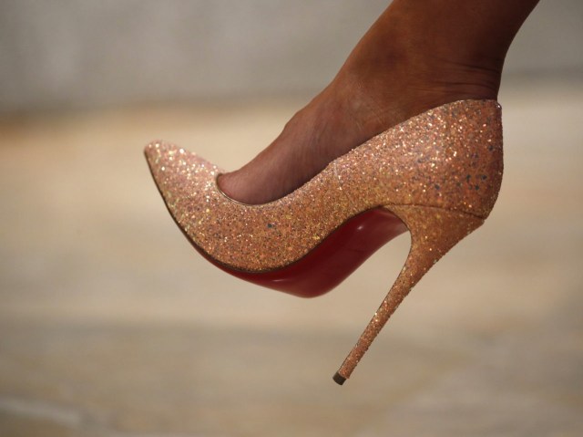 Mrs. Trump wore a pair of “So Kate” Christian Louboutin pink glitter pumps to add a bit of sparkle to her white, floral embellished dress that is reminiscent of Chanel. Mrs. Trump’s stilettos retail for $775.