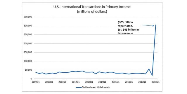 Despite President Trump’s tit-for-tat trade barbs, America’s CEOs are not wasting anytime in taking advantage of his tax reform plan. Over $300 billion was repatriated to the U.S. in the first quarter, according to the Bureau of Economic Analysis (BEA) — the most on record.