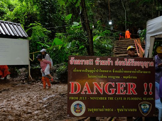 A local junior football (soccer) team ventured into the cave on June 23. The twelve boys age 11 to 17, and their coach, Ekaphol Chantadee Wong, 25, had visited the cave before and were there on a team outing. It began to rain and they were trapped inside by rising water. Warning signs are posted, so just exactly why they entered the cave at this time is not known.