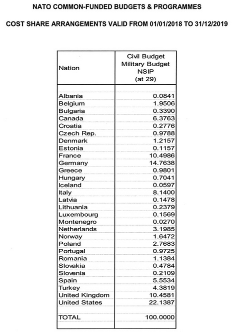 Direct (common) NATO funding. What each country pays: