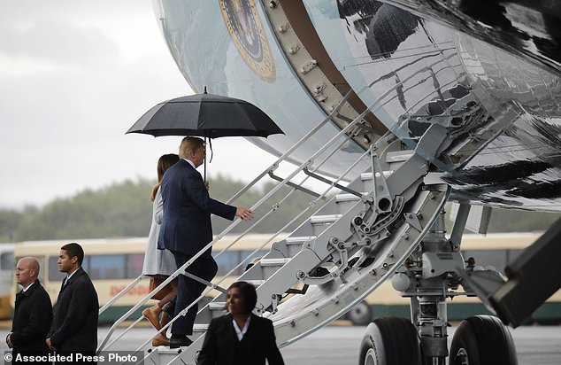 U.S. President Donald Trump and his wife Melania board Air Force One when departing from Glasgow, Scotland, on their way to Helsinki, Finland, Sunday, July 15, 2018 on the eve of his meeting with Russian President Vladimir Putin. (AP Photo/Pablo Martinez Monsivais)