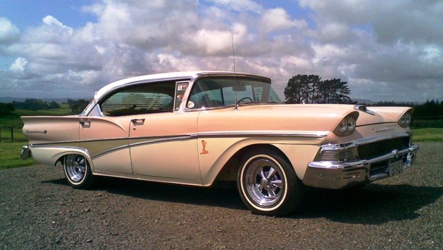 That was in my mom’s 1958 Ford Fairlane with a big V-8. It was a pretty fast car. A high school friend (older than me) had a Ford Fairlane Skyliner (hardtop convertible). His dad was a doctor, and both his parents drove convertibles – a white Cadillac and a baby blue Pontiac. Those were the days!