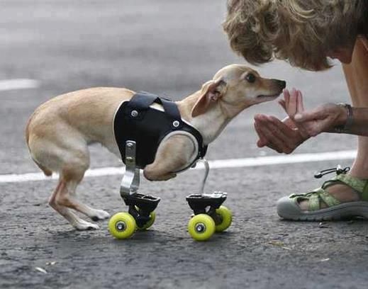 My goodness, that sack contraption is a terrible idea unless it is attached so the dog is facing the other way. Facing front he will get dirt, gravel, rain, mud and who knows what all else right in his eyes and ears.