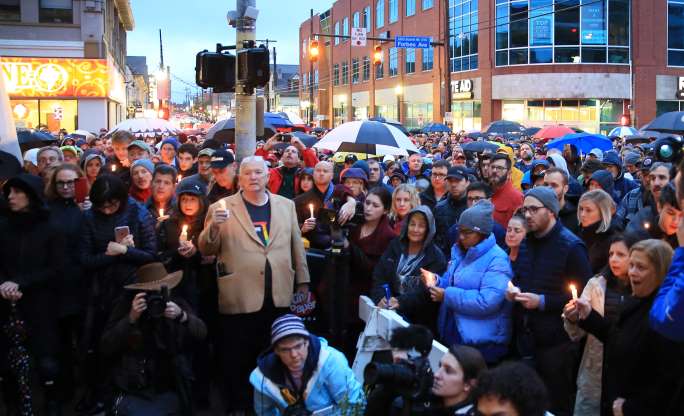 People gathered to mourn the loss of life as they hold a vigil for the victims of the Pittsburgh synagogue shooting.