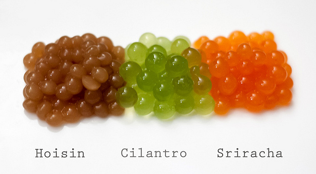 From America’s Test Kitchen, the process is called spherification. It’s what chef’s in trendy restaurants do to jazz up their dishes, and you can do it at home!