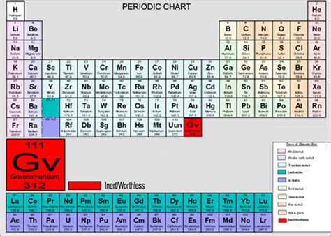 Since Governmentium has no electrons or protons, it is inert. However, it can be detected because it impedes every reaction with which it comes into contact. Even a tiny amount of Governmentium causes a reaction which normally takes only a few days to complete to four years or more to finish or resolve.