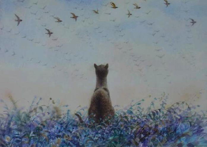 The cat at the top is interesting…painting? He seems to be stretching like he would fly off in a minute.