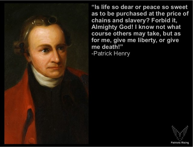 “Our petitions have been slighted,” Henry said, “our remonstrances have produced additional violence and insult; our supplications have been disregarded; and we have been spurned, with contempt, from the foot of the throne…we must fight! I repeat it, sir, we must fight! An appeal to arms and to the God of Hosts is all that is left us!”
