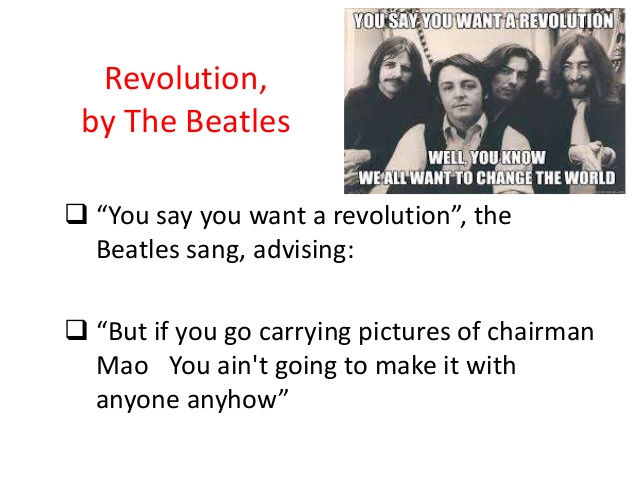“When you talk about destruction, don’t you know that you can count me out” “I did the slow version and I wanted it out as a single: as a statement of The Beatles’ position on Vietnam and The Beatles’ position on revolution. For years, on The Beatles’ tours, Brian Epstein had stopped us from saying anything about Vietnam or the war.” – John Lennon.