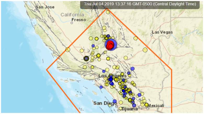 The Fourth of July quake, which struck at about 10:30 a.m. local time, was centered in a remote area near Searles Valley in the Mojave Desert, about 150 miles northeast of Los Angeles.