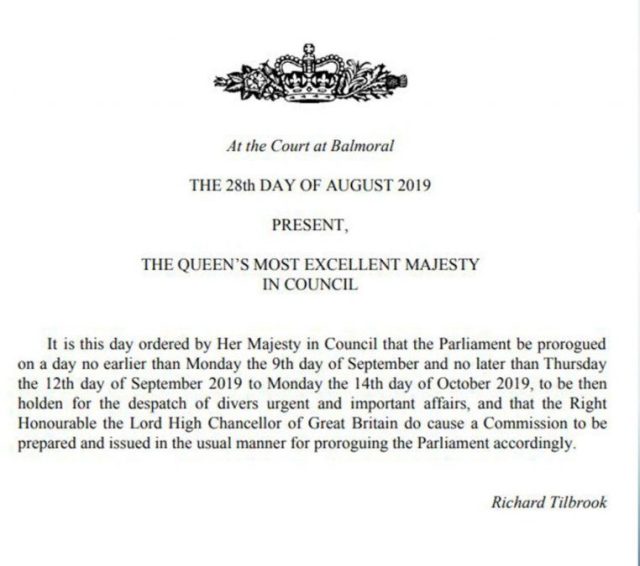 Thank you,Stella, for the expansive description of the Prorogation process. While I’m heartened to learn that Parliament will be boxed in for a time, I still worry that there will be a couple of weeks in October to scuttle Brexit (no-deal). Perhaps that is not enough time for hi-jinx. Great complement to the material over on CTH!