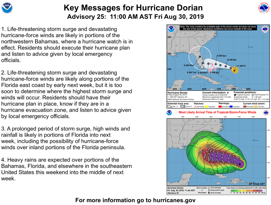 Hurricane Dorian updates for Friday, Aug. 30, 2019