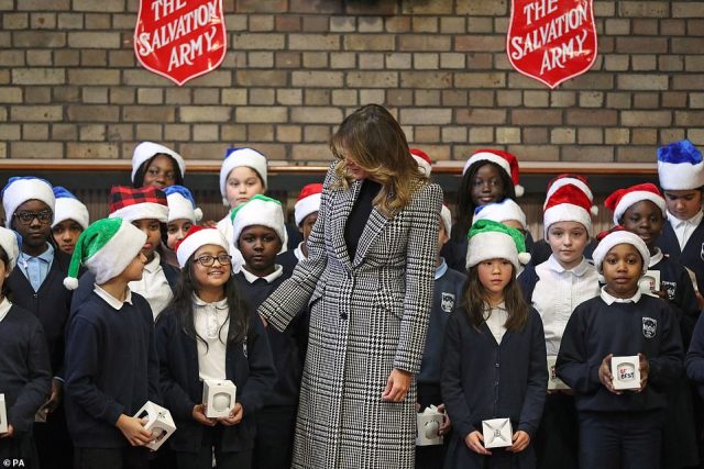 ‘Everyone was expecting her to be very grumpy but she was actually very nice!’ Children at London Salvation Army serenade Melania Trump with ‘All I Want for Christmas is You’ on last day of NATO tour
