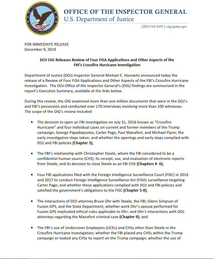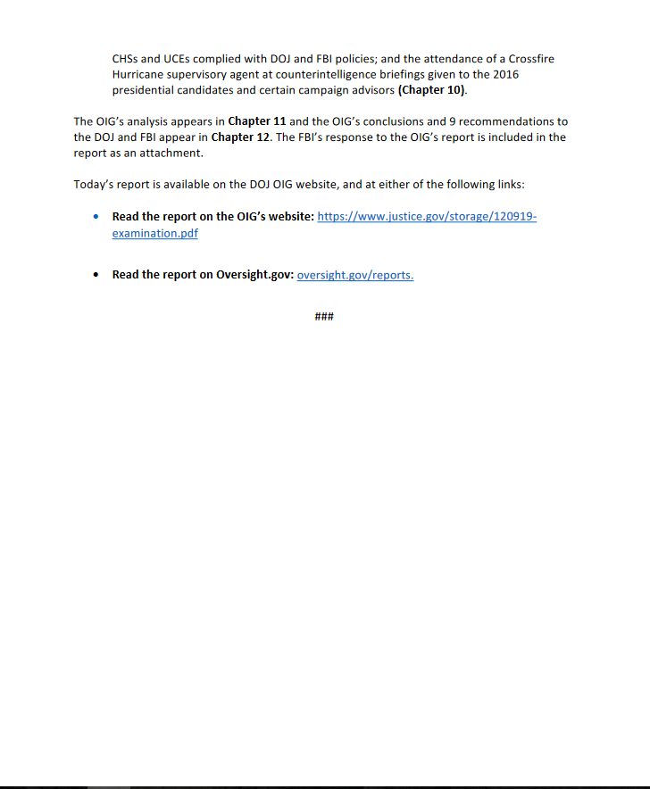 I’ve been gone all day, so haven’t had time to read it. I did hear on the radio that Barr and Durham have given statements disagreeing with IG. I took that as he was trying to provide cover.