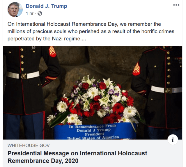 Unfortunately, there are still Jewish men, women, and children who face persecution and discrimination today. To fight the rise of anti-Semitism in the United States, I issued an Executive Order in December of 2019 that will help combat racist, anti-Semitic discrimination. Anti-Semitism will never be tolerated, and this action bolsters my Administration’s efforts to create a culture of respect that deeply values the dignity in every human life.