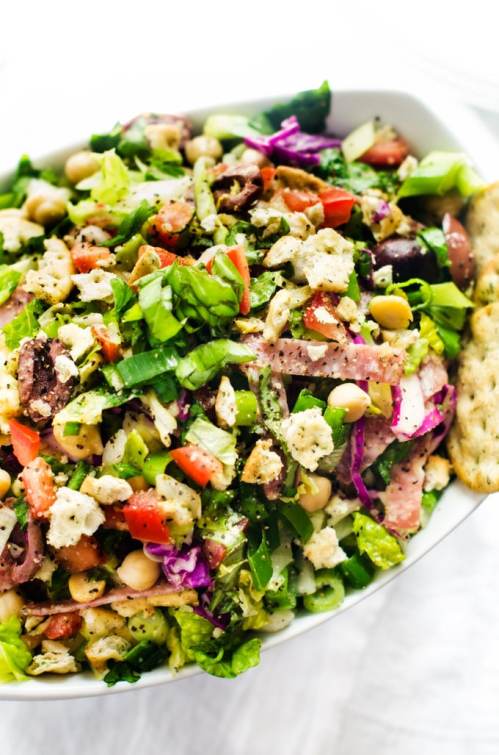 I made a chopped salad for lunch, which included Boston lettuce, cucumber, tomato, sliced olives, chopped marinated artichokes, red onion, some ham chunks, some swiss cheese chunks. Sometimes I add chickpeas, but not today. Made a dressing with mayo, sour cream, vinegar and herbs. Not as healthy as the plain vinegar and oil that I normally make. I’ve been making chopped salads more lately after having tasting a delicious one at a restaurant my daughter and I went to for a lunch a couple of weeks ago.