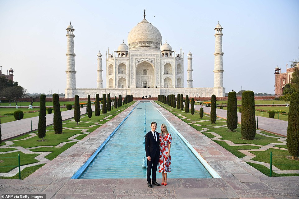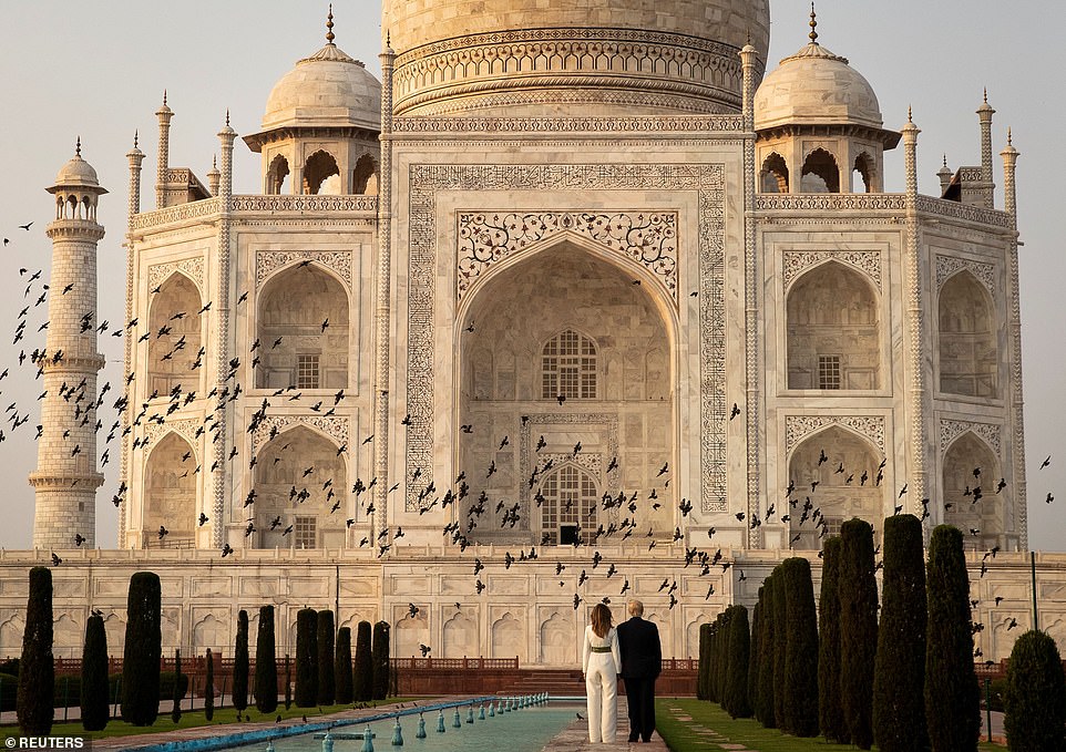 I really love the picture with the First Couple facing the Taj Majal and the birds flying.