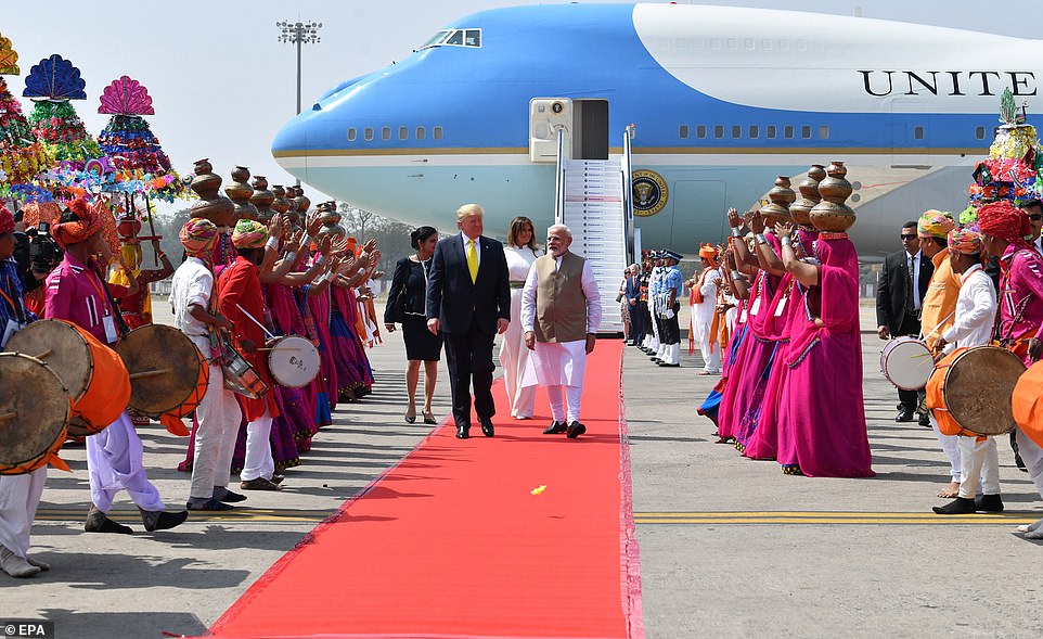 President Trump and the First Lady arrive at Motera Stadium, Ahmedabad, India