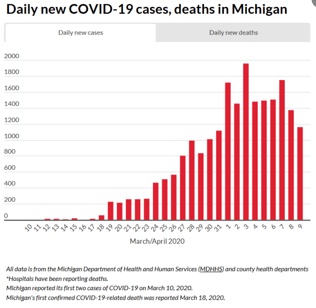 Earlier this week, Gov. Whitmer said the state “is not close to the apex yet,” and staying home is the best tool to keep people safe.