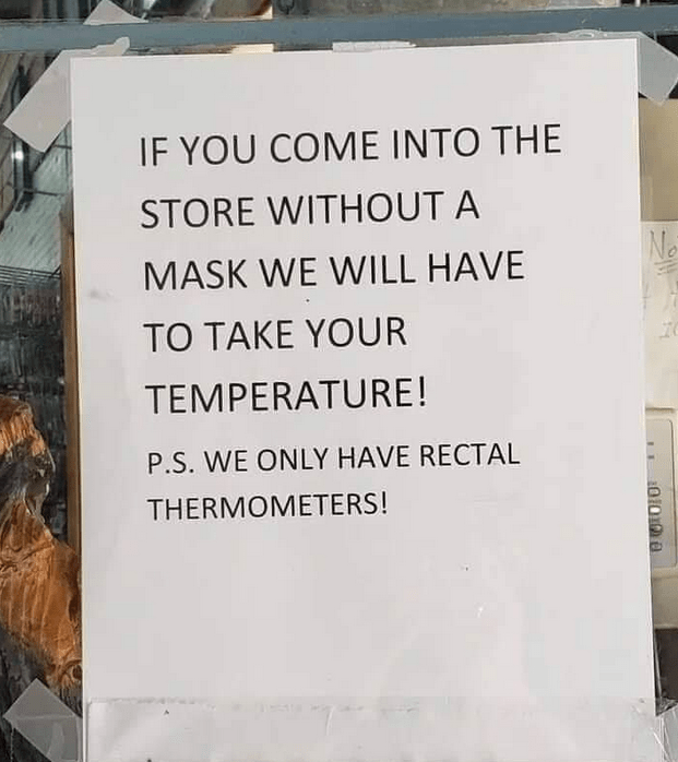 One way of getting people to wear masks (Kabuki theater in my opinion, but it’s their store.)That’s funny!