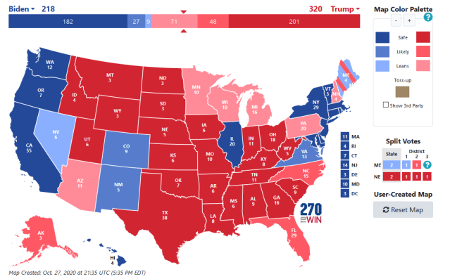 My current forecast. @realDonaldTrump 320 electoral votes. New Hampshire the closest. Nevada within reach. https://t.co/ExZzJ6QbtW #2020election