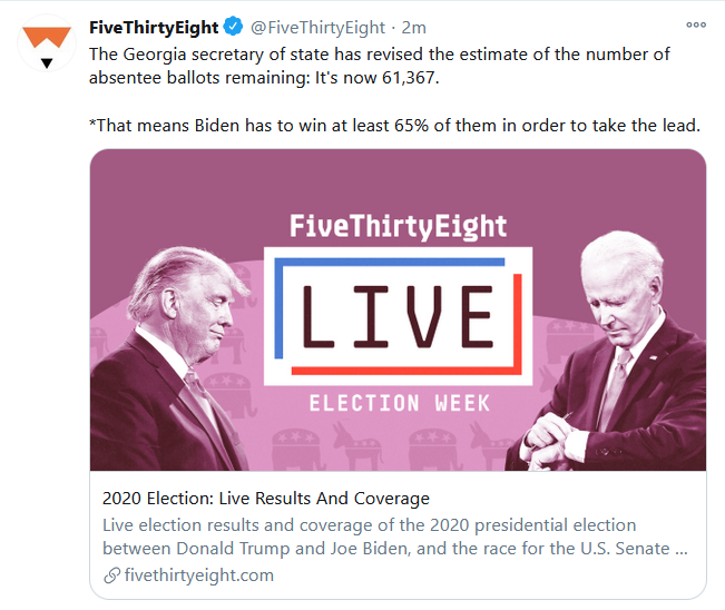 The electronic tabulation machines here are new ($25K each, about the size of an inkjet printer) and manufactured by Dominion (look ‘em up). They have been malfunctioning. We witnessed it. They were also jammed repeatedly necessitating repeated reruns of ballots. But the ballots were easily recounted multiple times if the simple reset button was ignored. And it was, and that may have been unintentional but in our viewing no one was there to cover every single set of tabulation scans. So, for example, in processing sets of 50 ballots at a time, if even one snagged in the machine it required re-running the other 49 ballots separately. This happened repeatedly.