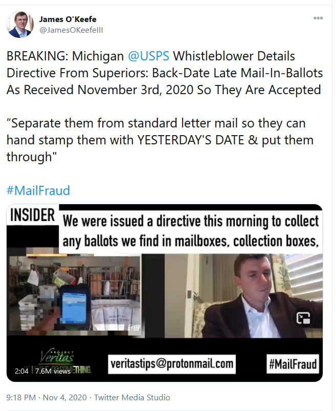 Latest is that the Office of the Inspector General for the USPS has contacted Project Veritas.