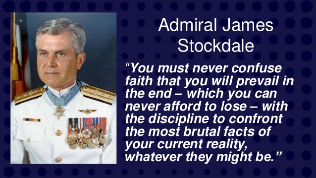 Once, Stockdale had invited Jim Collins, a management scholar, out to lunch. Collins asked Stockdale about how he persevered while in Vietnam.