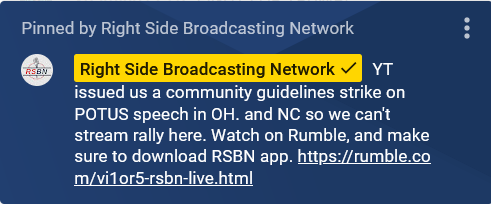 The above video link is from Rumble. Here is RSBN’s statement on their YouTube live feed: