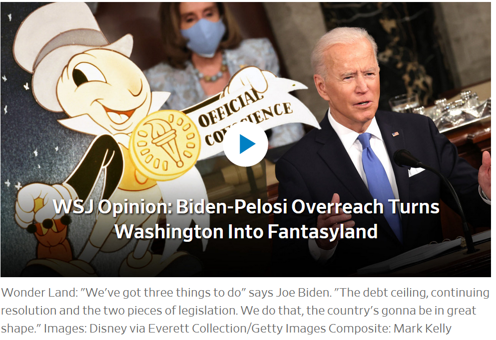 It’s a preposterous position, albeit of the sort this Administration often tries to sell. Such as: The soaring number of illegal border crossings in Texas is merely “seasonal,” the Afghanistan withdrawal was a success, and the cost of the $3.5 trillion reconciliation bill is “zero.”
