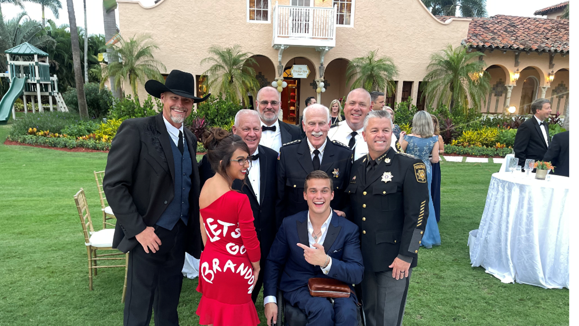 Rep. Lauren Boebert, R-Colo., and Rep. Madison Cawthorn, R-N.C., pose with law enforcement at Mar-a-Lago.