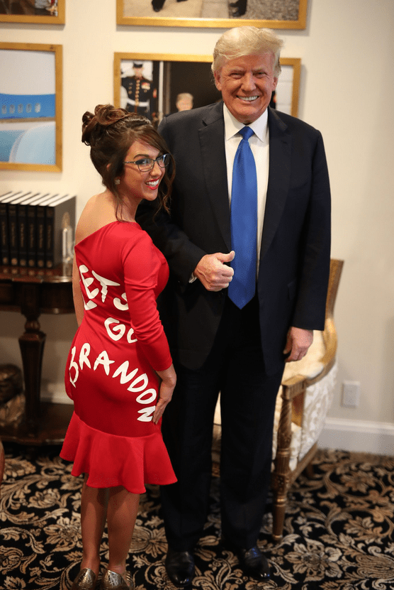 When asked about what Trump said about Boebert’s “Let’s go Brandon” dress, Stout said, “It made him smile, he loved it.” The dress was designed by Andre Soriano, who also designed the “Make America Great Again” gown, first worn by Joy Villa at the 2017 Grammys.