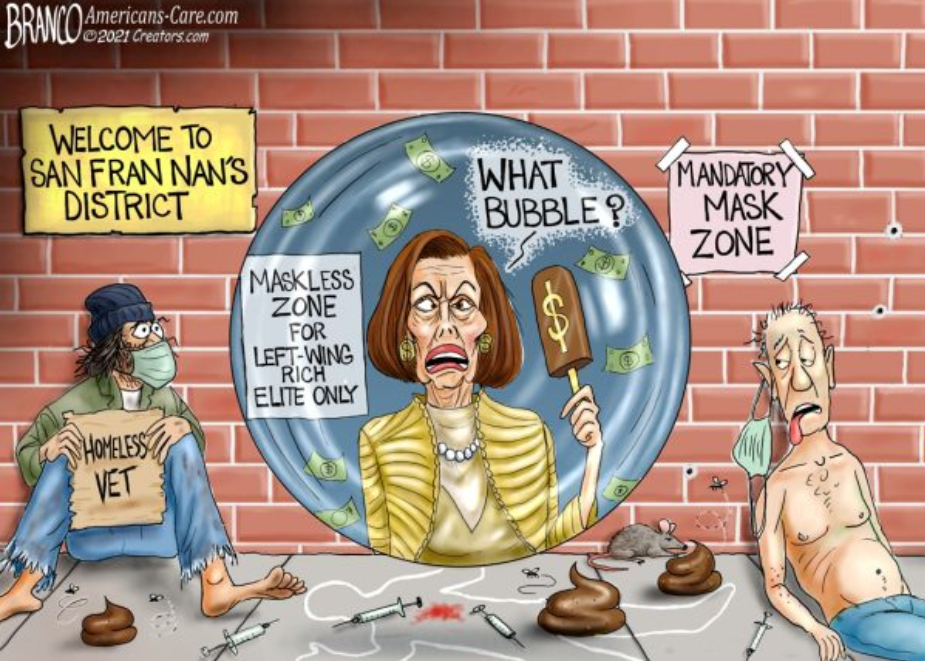 “A source close to Pelosi’s office said Pelosi said it was all Orange Man Bad’s fault for leaving this country in such an unholy mess, ignoring the plight of the vets and the drug addicted …”