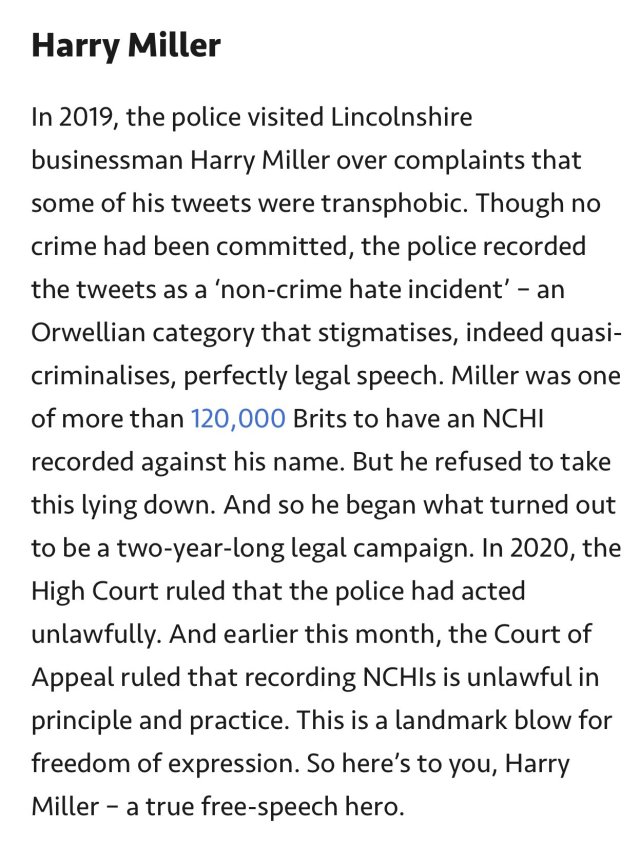 Humberside Police visited Harry Miller in January 2020 after a complaint over alleged transphobic tweets he made.