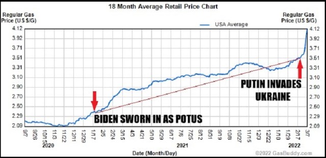 As far as gasoline prices are concerned, why have they taken an almost steady upwards trajectory since Joe Biden took office? Most of it has nothing to do with Ukraine.