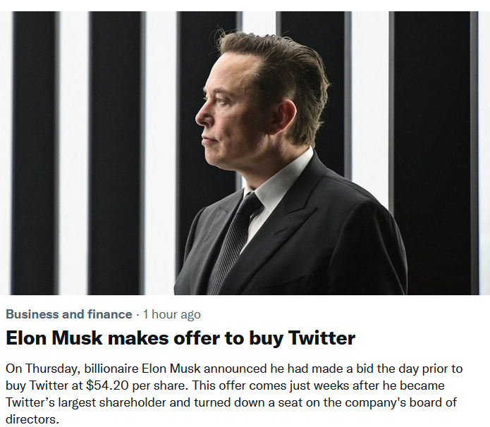 It means Twitter is not doing their fiduciary duty to their stockholders by rejecting Musk’s offer. Big no no. SEC should (but won’t) look into it.