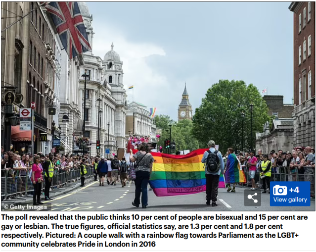 When 1,800 people were asked by pollster YouGov how many people were transgender, for instance, they thought it was about five per cent of the population.
