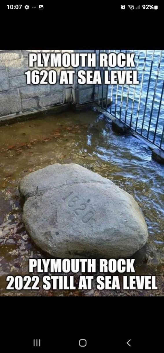 If the oceans have been rising for the past several decades, as we are gravely and solemnly informed, why is it that Plymouth Rock and Sidney Harbor (not to mention various other landmarks around the world) are at exactly the same level they were a century ago?
